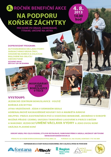 Hospodářský dvůr Bohuslavice u Telče pořádá dne 4. 8. od 14:00 hodin 3. ročník benefiční akce na podporu koňské záchranky. Pozvánku naleznete v článku.