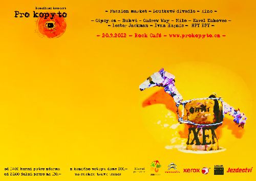Občanské sdružení Pro kopyto pořádá benefiční koncert, který se uskuteční 20. září v pražském klubu Rock Café. Jedná se o pilotní akci našeho sdružení. Koncert je koncipován jako celovečerní multižánrová show, na níž vystoupí hvězdy hudebního, tanečního a divadelního nebe. Výtěžek bude věnován na seno pro koně Převalského, který se vrací do domoviny na pláně a stepi v Mongolsku.