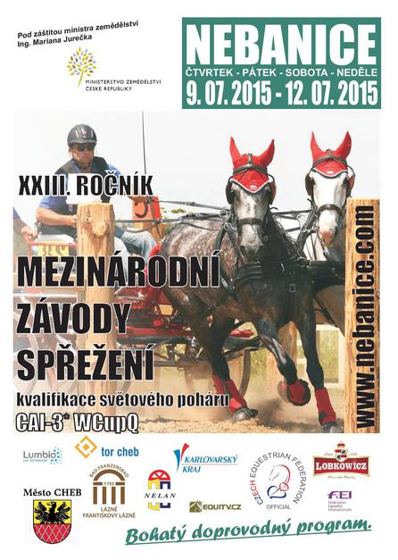 V termínu 9. – 12. července se v Nebanicích u Chebu koná Světový pohár spřežení. ČR budou reprezentovat J. Nesvačil sen., R. Nesvačil, M. G’ossl, J. Hrouda, Z. Jirásek, L. Jirgala, J. Kohout, O. Bareš, J. Exnar a L. Kurka. Seznam všech přihlášených uvnitř. Aktualizace 13. 7. 10:20 HOD: Celkové výsledky: čtyřspřeží – 1. G. von Stein (GER), 9. R. Nesvačil, dvojspřeží – 1. J. Arnold (USA), 2. L. Jirgala, jednospřeží – 1. a 2. F. Schiltz (LUX), 5. L. Kurka, čtyřspřeží pony – 1. M. Ritter (GER), dvojspřeží pony – 1. E. Boom (NED).