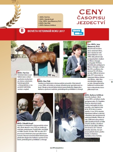 Časopis Jezdectví vyhlásil v roce 2017 premiérové ceny. O nominacích i vítězích rozhodovali čtenáři časopisu. Titul Bioveta veterinář roku 2017 získala MVDr. Barbora Schillová.