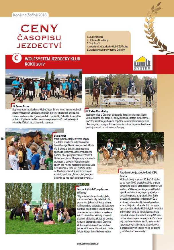Ceny časopisu Jezdectví 2017 – Wolfsystém jezdecký klub roku