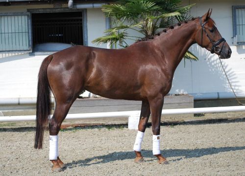 Drezurní klisna KWPN, fantastický původ Wynton (Jazz) x Flemmingh, narozena 2008, velmi tmavá ryzka, KVH 1,67, stupeň výcviku L drezura. Nádherná klisna s extrémně dobrým pohybem, velmi silný odraz od zádě, prostorné a vznosné chody. Klisna má miliónový charakter, přítulná a 100% spolehlivá. Výborně jezditelná a nepřehlédnutelná. Zkrátka má v sobě všechny předpoklady aby dosáhla na tu nejvyšší úroveň.