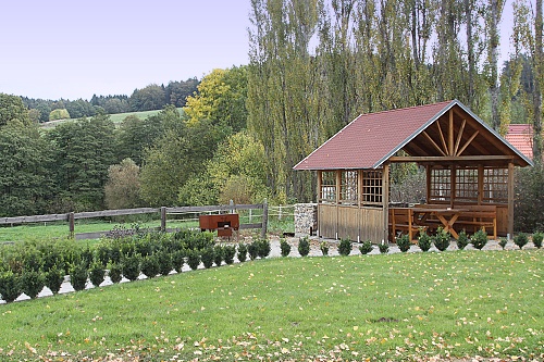 Místo pro posezení s přáteli s výhledem na zdejší pastviny.