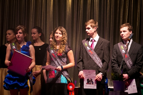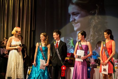 Nejlepší junioři zleva Anna Kellnerová, za druhou Adélu Půlpánovou Kateřina Málková, Francesca Kolowrat-Krakowská a Tina Šalková, která přebírala cenu i za pátou Nicolu Grünthalovou. Vpravo JUDr. Renata Tomanová, majitelka společnosti Dance and Jump.