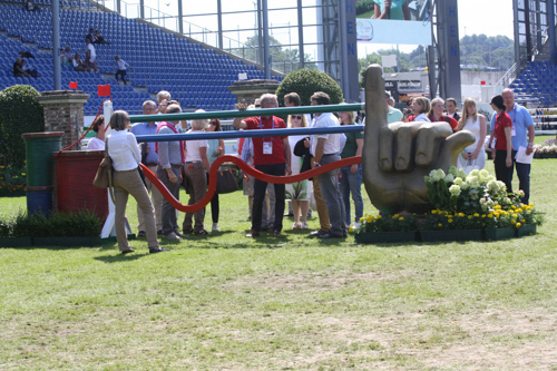 Nejvyšším skokem čtvrtečního kola byl 163 cm vysoký, velmi prázdný kolmý skok, který následoval po vodním příkopu – na 6-7 cvalových, jak právě vysvětluje Heinrich Hermann Engemann.