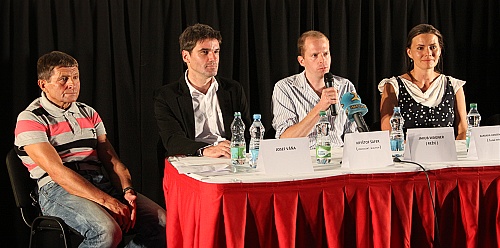 Tvůrci filmu včetně hlavního hrdiny (zleva): Josef Váňa, producent Kryštof Šafer, režisér Jakub Wagner a za Českou televizi Barbara Jansen Čechová.