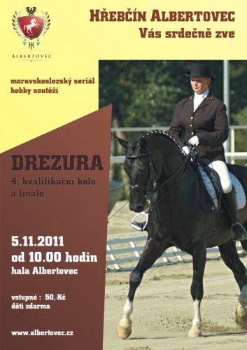 Hřebčín Albertovec zve v sobotu 5. listopadu od 10:00 na 4. kolo a finále seriálu hobby soutěží v rámci Moravskoslezského seriálu, vše se odehraje v místní jezdecké hale. Uzávěrka přihlášek je 2. listopadu. Propozice a pozvánku najdete uvnitř článku.
