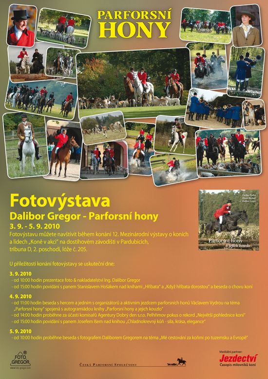 Jak jste se již z našeho časopisu i webu dozvěděli, o nadcházejícím víkednu nás čeká 12. Mezinárodní výstava o koních a lidech s názvem „Koně v akci“ na dostihovém závodišti v Pardubicích. V rámci této akce bude probíhat zároveň fotovýstava Dalibora Gregora na téma Parforsní hony obohacená o zajímavý program. Pozvánku se všemi podrobnostmi najdete v článku…