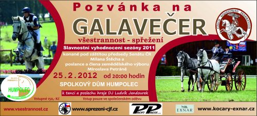 Galavečer rekapitulující sezonu 2011 v soutěžích všestrannosti a spřežení se koná v sobotu 25. února, tradičně v humpoleckém Spolkovém domě. Slavnostnímu vyhodnocení dali svou záštitu předseda Senátu Milan Štěch a člen zemědělského výboru Poslanecké sněmovny Miroslav Petráň.