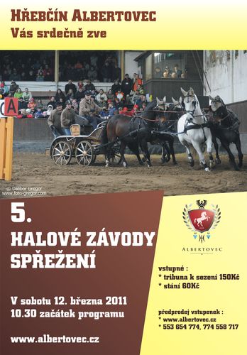 Hřebčín Albertovec pořádá v sobotu 12. března V. halové závody spřežení a to od 10:30. Potřebné informace získáte na webových stránkách hřebčína www.albertovec.cz. Ceny vstupného se pohybují v rozmezí od 60 – 150 Kč. Plakát najdete v článku.