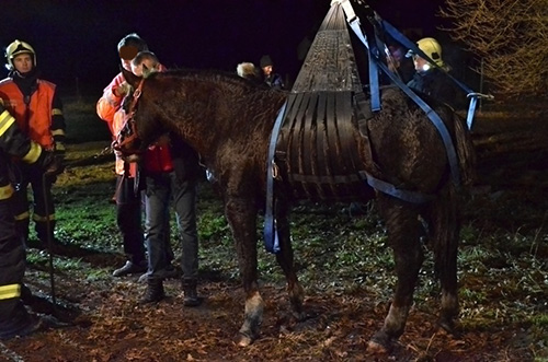 Hasiči nejprve odčerpali více než metr vody kalovým čerpadlem, aby zvířeti nebyla taková zima. Kvůli zlepšení manipulačního prostoru si odkryli celou jímku a pod koně prostrčili záchrannou síť, kterou získali darem před koncem roku od občanského sdružení EDUvet. Síť byla prvně použitá v praxi. Zafixované zvíře v síti hasiči připevnili na hydraulickou ruku technického automobilu a koně vytáhli. U zásahu asistoval také přivolaný veterinář. Po vytažení se zvíře rychle aklimatizovalo a bez zranění bylo odvedeno za ohlávku.