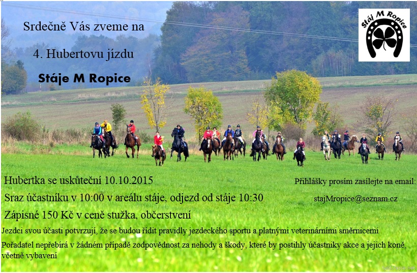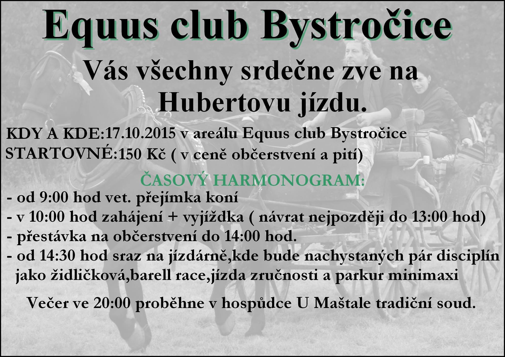 Pozvánka. Sraz účastníků v 10.00 hodin v areálu stáje. Zápisné 150 Kč.