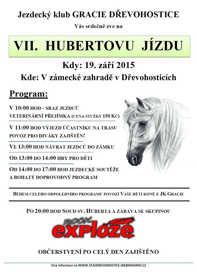 Facebook, 9.00 – 10.00 prezentace, 10.30 nástup účastníků. Připraveny jsou dvě trasy, jedna do lesa, druhá po loukách s přírodními skoky. Poté budou následovat soutěže – mini-maxi, štafetový parkur, jízda zručnosti, psí parkur. Všichni jsou srdečně zváni!