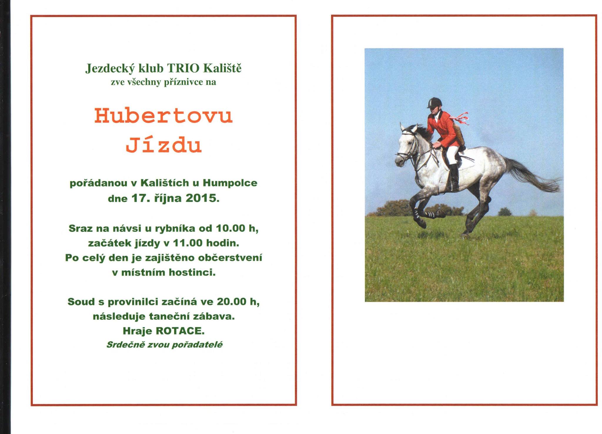 Soutěž o stolní kalendář – posílejte nám své fotografie z Hubertových jízd na e-mail web@jezdectvi.cz, my je vložíme do galerie na našich facebookových stránkách a tři fotky s nejvíce lajky získají stolní kalendář Jezdectví na rok 2016. Soutěžit můžete až do 30. listopadu.