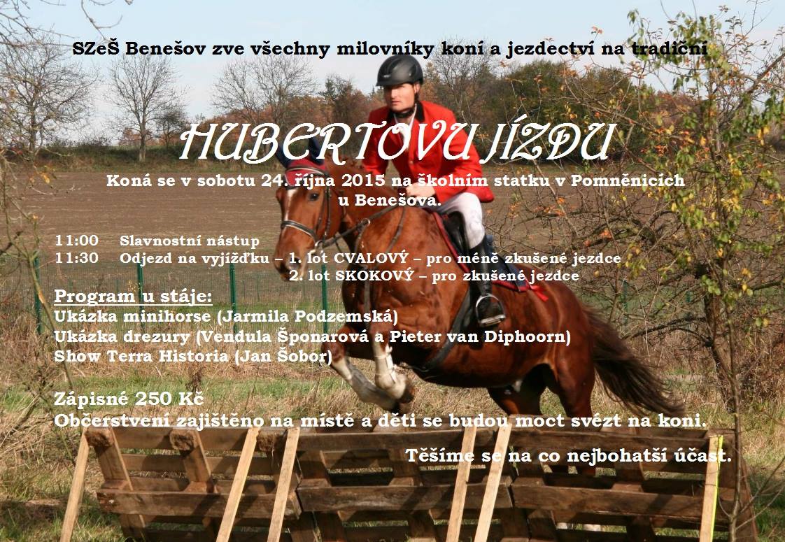 Hubertova jízda na školním statku v Pomněnicích u Benešova