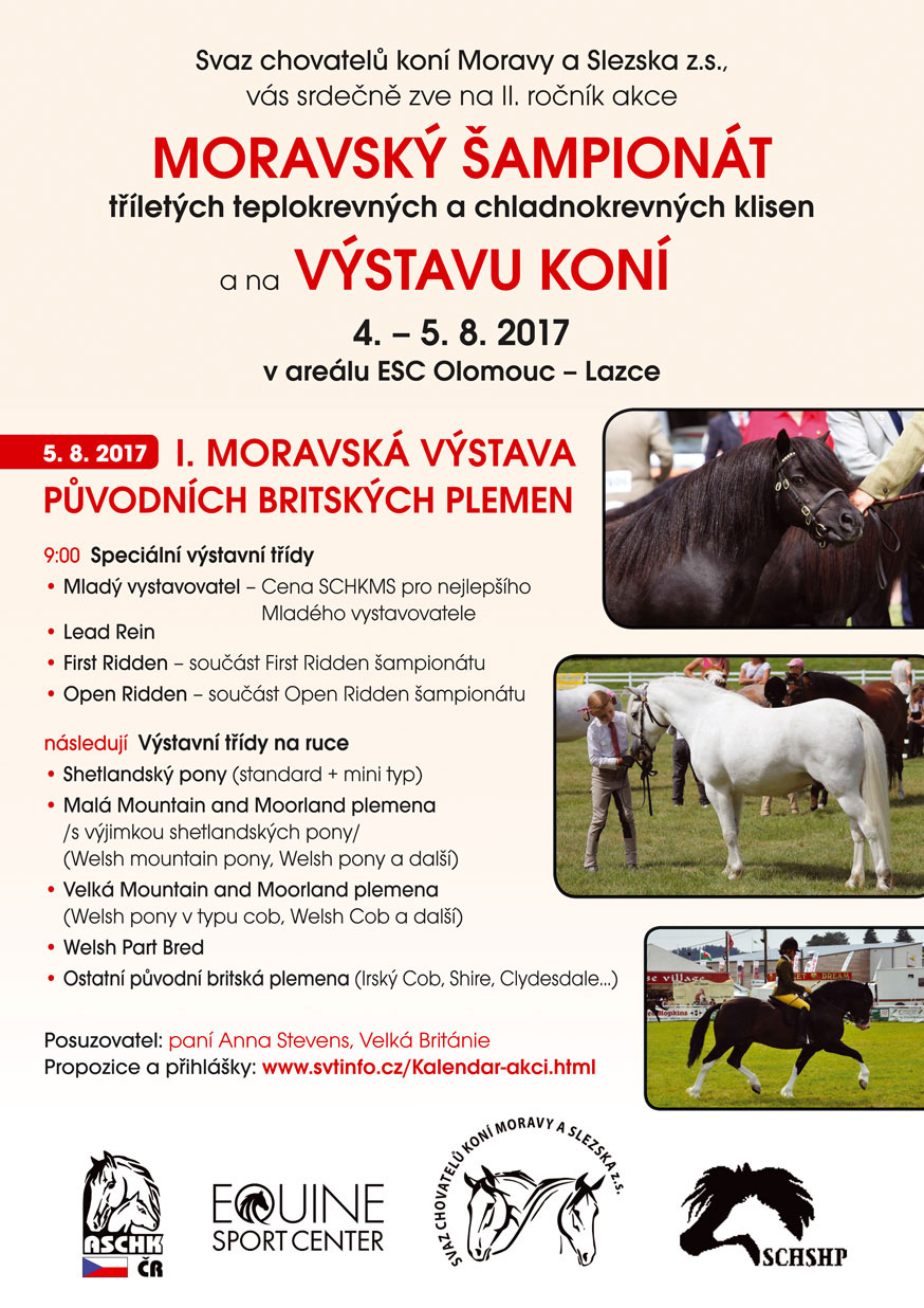 ASCHK Moravy a Slezska Vás zvou na I. Moravskou výstavu původních Britských plemen, která se bude konat 5. srpna 2017 v areálu ESC Olomouc. Posuzování přijala paní Anna Stevans z Velké Británie. Více uvnitř.