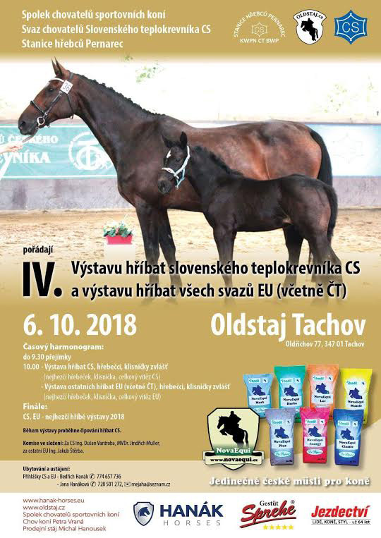 Spolek chovatelů sportovních koní pořádá v novém termínu 6. října v Oldstaj Tachov IV. Výstavu hříbat slovenského teplokrevníka a hříbat zapsaných v ostatních evropských plemenných knihách ročníku 2018.