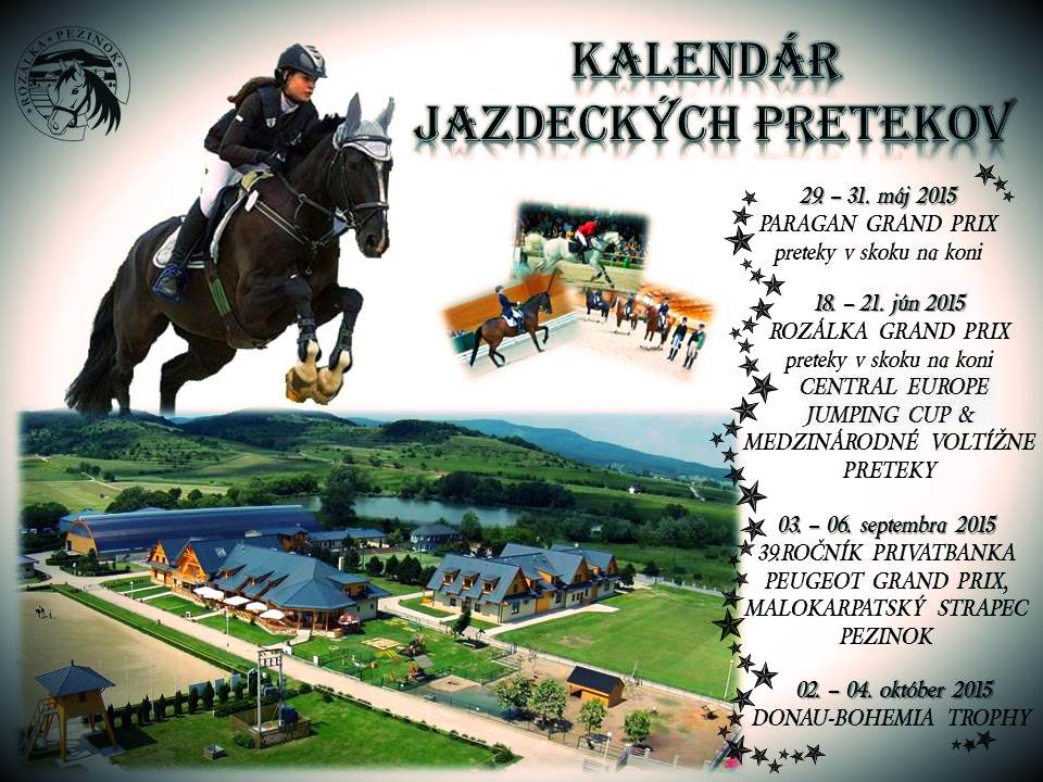 Jezdecký areál Rozálka ve slovenském Pezinoku letos hostí čtyři závodní mítinky. Sledujte s námi výkony nejen slovenských, ale i českých jezdců, kteří areál rádi navštěvují. Aktualizace 3. 6. 18:20 HOD: O víkendu 29. – 31. května pořádal areál první letošní závody. V Grand Prix zvítězil Juraj Hanulay a Donjo, nejlépe z Čechů zajela GP Lucie Strnadlová s Carinou za 8 tr.b. v rozeskakování. Další výsledky uvnitř.