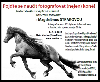Pojďte se naučit fotografovat (nejen) koně! Jezdectví exkluzivně přináší unikátní Intenzivní dvoudenní fotokurz s Magdalénou Strakovou. Co vás ve dnech 7. až 8. května pod vedením Fotografky roku 2016 čeká? Komu je workshop určen? Co vzít s sebou kromě dobré nálady?