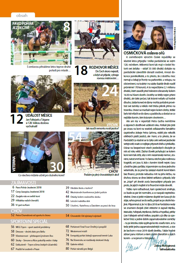 Již jen dva dny máte na zakoupení listopadového Jezdectví – ve středu přijde prosinec! Že nevíte, co by vás mohlo zrovna v listopadovém čísle zajímat? Zkuste nakouknout do obsahu – určitě si vyberete!