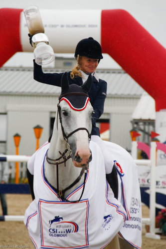 15:50 HOD: Vítězkou soutěže 150 cm se stala Jana Miklošová a Nourejev N Z. Šťastnou úvodní dvojici rozeskakování, která si svoje vedení udržela až do konce, jsme oslovili ihned po výjezdu z kolbiště. Vyšlo všechno tak, jak bylo naplánované? „Nevěděla jsem přesně, jak to vyjde, ale naštěstí se povedlo a Nurko skákal skvěle, sám zabral vždycky proti skoku.“ Do rozeskakování se probojovala spolu s dalšími 6 dvojicemi a bezchybně ho absolvovala už jen další žena na startu, sestra mistra ČR z roku 2010 Lukasze Kozy, Paulina. S teprve osmiletým holandským Banjo Boyem porazila i svého bratra, který měl v sedle Chita Blue dvě chyby (6.). Jako třetí skončila maďarská dvojice Balázs Horváth a PM Jumping Lady s jednou chybou v lepším čase než německá Jan Sprehe a Kevin Costner.