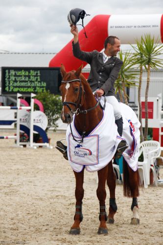 Pětatřicetiletý Jaroslaw Skrzyczynski je po Aleši Opatrném nejvýše postaveným v Olomouci startujícím jezdcem ve světovém žebříčku. Zeptali jsme se ho na pár informací. jeho jedničkou je Crazy Quick, který nezůstává nic dlužen svému jménu. „Je velmi nervozní, jezdím ho už čtvrtou sezonu, je mu devět let a první závody šel kvůli svému temperamentu až v šesti letech. Mám ho napůl se sponzorem,“ sdělil jezdec. Sám Jaroslaw začínal jezdit ve 14 letech, první závody absolvoval v Německu. Bydlí nedaleko Lešna a chystá se i do Normandie na mistrovství světa, dalším jistým členem, pokud nedojde k nějakému problému, je Piotr Morsztyn. S Crazy Quickem se bude do srpna a odjezdu na WEG účastnit už jen domácích závodů – mistrovství Polska a dvou dvouhvězdových CSI. V dnešní Diamond Tour bohužl dvakrát chybovali – až na dvou posledních skocích. „Ano, to je právě ten problém, je těžké udržet tak dlouho Crazy Quicka v klidu. Je to velmi dobrý, ale složitý kůň na ježdění,“ shrnuje.