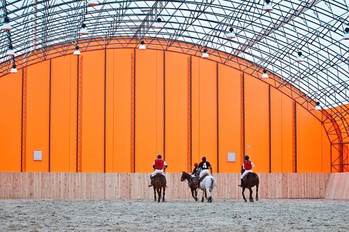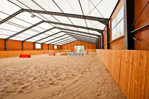 Otázkou však je, jakou krytou jízdárnu pro daný areál zvolit. Nabízí se mnohá řešení počínaje klasickou zděnou budovou, přes dřevostavbu až po lehkou montovanou halu. Optimální variantou pro krytou jízdárnu je právě montovaný objekt, a to hned z několika důvodů. Rychlost výstavby na stávajícím povrchu, variabilita, bezúdržbovost a cena jsou jen základním výčtem pozitiv. Přičteme-li ještě schopnost opláštění propouštět denní světlo, velký objem vzduchu, jež je důmyslně ventilován a nízké nároky na spodní stavbu, je zcela jasné, že montované haly jsou pro jezdecký sport bezesporu výhodné. Společnost POLAK CZ, s. r. o., již realizovala desítky montovaných jízdáren po celé České republice. V Eurohalách POLAK CZ, s. r. o., se trénují všechny disciplíny jezdeckého sportu – od parkúru, přes pólo i vozatajství až po westernové ježdění.