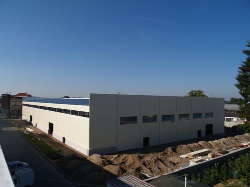Opláštění haly je provedeno z minerálních panelů (100 mm), které jsou upevněny na ocelovou konstrukci.