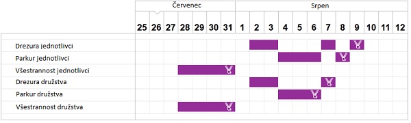 Aktualizace 2. 8. 10:30 HOD: Dnes v 11 hodin odstartuje první drezurní dvojice – živé vysílání sledujte na tomto odkazu. Startku najdete zde.