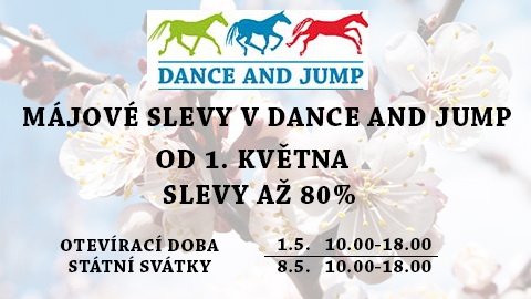Jak již bývá v našem obchodním domě Dance and Jump pravidlem, připravujeme na nadcházející státní svátky výhodné nákupy. Ve středu 1. května, odstartuje v prostorách obchodního domu Dance and Jump v Praze akce pod názvem „MÁJOVÉ SLEVY NA DEKY“. Od tohoto data si můžete vybrat ze širokého sortimentu vybraných dek pro koně se slevou až 80 %, a to exkluzivně ještě před začátkem sezóny.