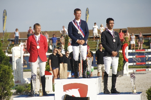 17:50 HOD: Až čtvrtý startující v rozeskakování předvedl nulu a tím získal bronz – byl jím Ludvík Jandourek s Vigem! Bohužel všechny předešlé dvojice Kamil Papoušek a Bel Canto Hradiště, Jiří Hruška a Mr. Vox Agromarket a Zuzana Zelinková s Calerim (ta až na posledním skoku!) jednou chybovali.