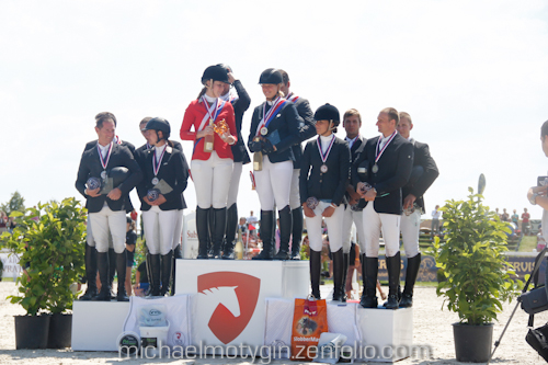 11:30 HOD: Poslední dvojice Prahy 2 získává zlatou medaili! Jako jediní dokončili obě kola bezchybně – poslední nulu přinesl L. Dubovi, M. Hažmukové a Lindě Vondráčkové otec posledně jmenované Luboš, když dokončil bezchybně! Stříbro získává družstvo Jižní Čechy 1 (Zdeněk Hruška – Lukrécie, Štěpán Šebelka – Zugatti, Lucie Poláková – Quenta, Kamil Papoušek – Elton v.R.) a o bronz čekáme na rozeskakování.