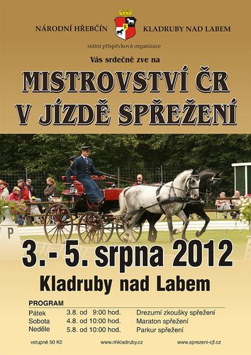 Národní hřebčín v Kladrubech byl ve dnech 3. – 5. srpna hostitelem mistrovství České republiky spřežení 2012. O mistrovské kovy se bojovalo ve čtyřech kategoriích, přičemž nejvíce napínavý průběh mělo dvojspřeží.