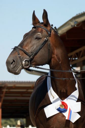 Žlutou pentli si do stáje KVATRO-EKOSTATEK s.r.o.,Velká nad Veličkou odvezla hnědá kobylka Przedswit VI MT/ Nicolette po Przedswit VI MT z 55/270 Niny.