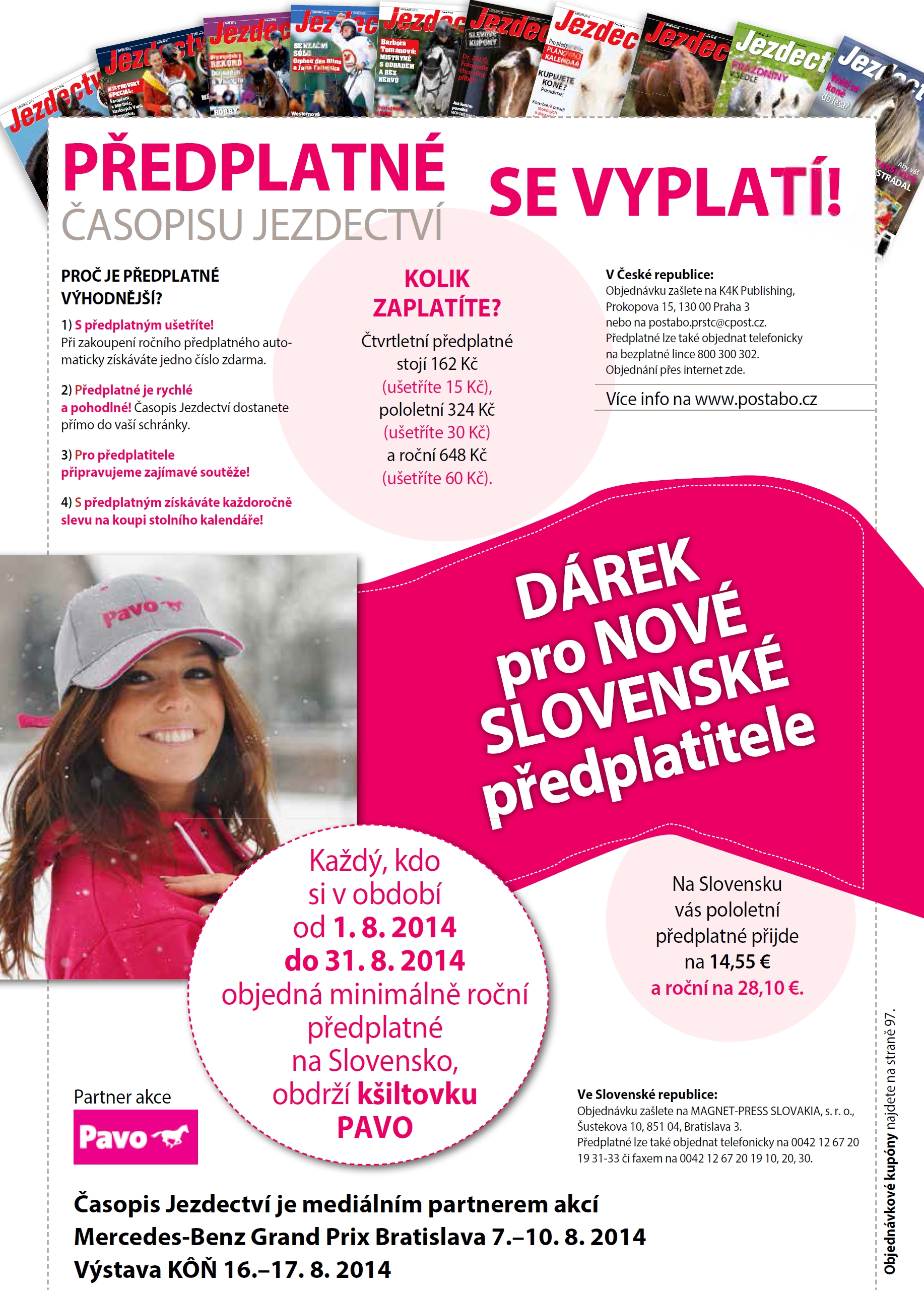 MINIMÁLNĚ ROČNÍ PŘEDPLATNÉ JEZDECTVÍ, ZÍSKÁ KŠILTOVKU PAVO