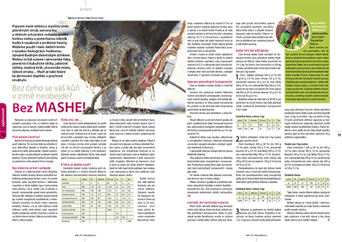 Pojmem mash většinou myslíme směs pšeničných otrub, semene lnu a obilovin zchutněné melasou, prolité horkou vodou a ponechanou několik hodin k nasáknutí a změkčení hmoty. Můžeme použít i řadu dalších krmiv s vysokou biologickou hodnotou, výrazně kladným dietetickým účinkem…. Více v lednovém čísle časopisu Jezdectví!