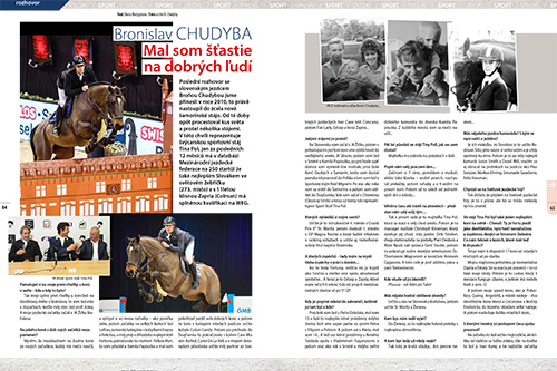 Poslední rozhovor se slovenským jezdcem Broňou Chudybou jsme přinesli v roce 2010, to právě nastoupil do zcela nové šamorínské stáje. Od té doby opět procestoval kus světa a prošel několika stájemi. V této chvíli reprezentuje švýcarskou sportovní stáj Tina Pol, jen za posledních 12 měsíců má v databázi Mezinárodní jezdecké federace na 250 startů! Je také nejlepším Slovákem ve světovém žebříčku (273. místo) a s 11letou klisnou Zapria (Colman) má splněnou kvalifikaci na WEG.