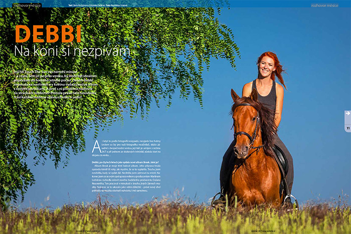 Její hit Touch The Sun vás nemohl minout – a i nyní, šest let po jeho vzniku, by mohl být ideálním popěvkem do horkého letního počasí. Ovšem Debbi neusnula na vavřínech a v květnu vydala čerstvé album s novými písničkami. A proč s ní přinášíme rozhovor na stránkách Jezdectví? Protože právě tato rusovláska tráví každou možnou volnou chvilku v sedle! Více v červencovém Jezdectví, kde můžete také soutěžit o nové album Break!