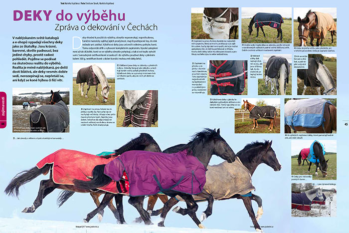 V nablýskaném světě katalogů a e-shopů vypadají všechny deky jako ze škatulky. Jsou krásné, barevné, skvěle padnoucí, bez jediné chyby, prostě radost pohledět. Pojďte se společně s námi podívat v listopadovém Jezdectví na skutečnou realitu do výběhů. Realita je méně nablýskaná, po dešti dosti blátivá, ale deky vesměs dobře sedí, nerozepínají se, nepřetáčí se, ani když se koně hýbou či fičí vítr.