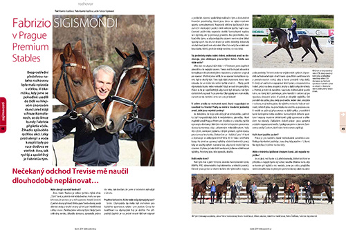 Bezprostřední předehrou našeho rozhovoru byla malá epizoda s včelou. V okamžiku, kdy jsme se pohodlně usadili do židlí na hřejivém únorovém slunci před stájí v Praze Komořanech, se do límce bundy Fabrizia připletla včela. Žihadlo způsobilo rychlou akci. Léky proti alergii a voda k zapití byly po ruce doslova ve vteřině. Ano, tak rychlý a spolehlivý je Fabriziův tým.