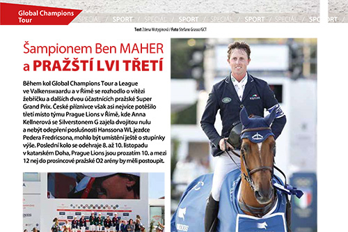 České příznivce však asi nejvíce potěšilo třetí místo týmu Prague Lions v Římě, kde Anna Kellnerová se Silverstonem G zajela dvojitou nulu a nebýt odepření poslušnosti Hanssona WL jezdce Pedera Fredricsona, mohlo být umístění ještě o stupínky výše. Poslední kolo se odehraje 8. až 10. listopadu v katarském Doha, Prague Lions jsou prozatím 10. a mezi 12 nej do prosincové pražské O2 arény by měli postoupit. Více v říjnovém Jezdectví!
