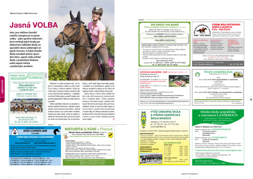 Ano, pro většinu čtenářů našeho časopisu je to jasná volba – jako správní milovníci koní směřují jejich kroky po dokončení základní školy na speciální obory zabývající se jejich chovem. A když střední škola nenabízí přímo speciální obor, aspoň vždy zvítězí školy s jezdeckým klubem nebo aspoň města s jezdeckým areálem… Více v listopadovém čísle časopisu Jezdectví!