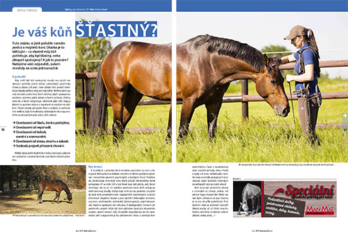 Aby mohl být kůň spokojený, musíte mu zajistit následující potřeby: pevné zdraví, odpovídající podmínky chovu a zábavu při práci. Jako základ nám postačí dodržovat zásady welfare, tedy pohody zvířat. Welfare zahrnuje celý komplex podmínek, které ovlivňují jejich spokojenou existenci, zejména jejich zdraví a životní pohodu. Zvířata obecně, a koně nevyjímaje, obdobně jako lidé reagují kladně na pozitivní situace a negativně na nepříjemné události. Více v únorovém Jezdectví!