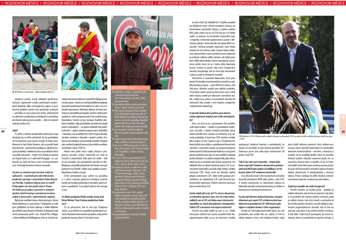 Jiří Skřivan má za sebou úspěšný rok – nejenom, že jeho „dítě“ Český skokový pohár se vloni těšil velké přízni startujících a pozornosti diváků a médií, ale dařilo se mu i na zahraničních kolbištích v sedle jeho klisny Kallisto a také dobře šlape domácí jezdecký areál v Suché u Litomyšle. Přečtěte si rozhovor s tímto čerstvým vítězem martinické včerejší Ceny Pavo – dubnové Jezdectví je na trhu pouze do úterý 29. 4.!!!