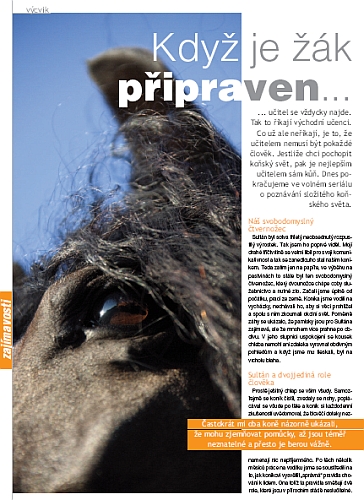 Když je žák připraven, učitel se vždycky najde. Tak to říkají východní učenci. Co už ale neříkají, je to, že učitelem nemusí být pokaždé člověk. Jestliže chci pochopit koňský svět, pak je nejlepším učitelem sám kůň.