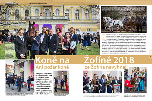 Jubilejnímu patnáctému ročníku galavečera Koně na Žofíně nechyběla dávka dramatičnosti aspoň co se příprav týká. Dva dny před původním březnovým termínem v paláci vyhořela elektroinstalace a celá akce musela být posunuta na první volný termín, čímž byla sobota 7. dubna.