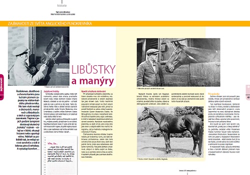 Rodokmen, dostihová a chovná kariéra jsou tučným písmem zapsány na vizitce každého plnokrevníka. Nic tam však nestojí o zlozvycích, manýrech a libůstkách; o těch si vyprávejí jen zasvěcení. Teprve v jejich podání šampioni dostávají skutečný „koňský“ rozměr – válejí se v blátě, okusují hrazení nebo aportují větve. Nekteří se polidštili tak, že milují sýrové sendviče a rádi si loknou piva či whiskey. A vyžadují komfort… Více k přečtení v červencovém Jezdectví.