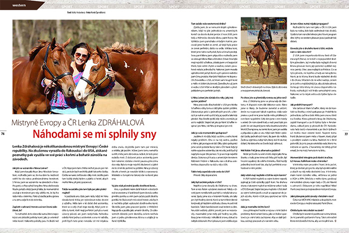 Lenka Zdráhalová je několikanásobnou mistryní Evropy i České republiky. Na zkušenou vyrazila do Rakouska i do USA, získané poznatky pak využila ve své práci s koňmi a bohatě zúročila na závodech… Více v zářijovém Jezdectví!