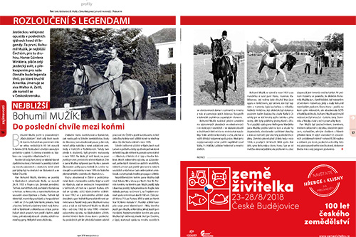 Jezdeckou veřejnost opustily v posledních týdnech hned tři legendy. Ta první, Bohumil Mužík, je nejbližší Čechům, pro tu druhou, Hanse Güntera Winklera, pláče celý jezdecký svět, a překvapením pro naše čtenáře bude legenda třetí, po které truchlí Amerika. Jmenuje se sice Walter A. Zettl, ale narodil se v Československu… Více v srpnovém Jezdectví.