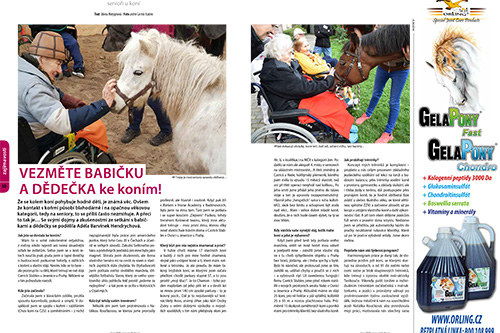 Že se kolem koní pohybuje hodně dětí, je známá věc. Ovšem že kontakt s koňmi působí blahodárně i na opačnou věkovou kategorii, tedy na seniory, to se příliš často nezmiňuje. A přeci to tak je… Se svými dojmy a zkušenostmi ze setkání s babičkami a dědečky se podělila v únorovém Jezdectví Adéla Barvínek Hendrychová.